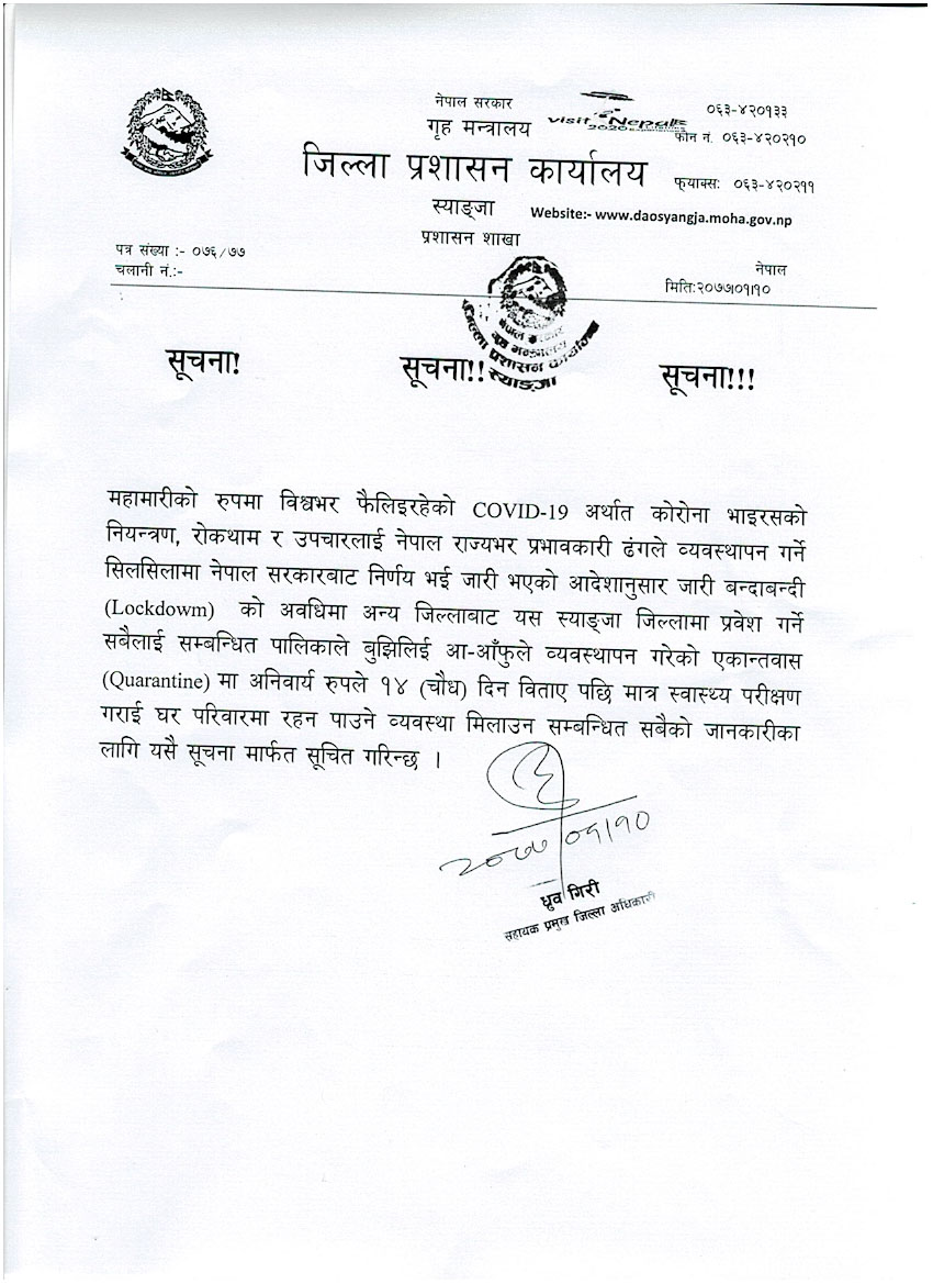जिल्ला प्रशासन कार्यायल, स्याङ्जाको अत्यन्त जरुरी सूचना