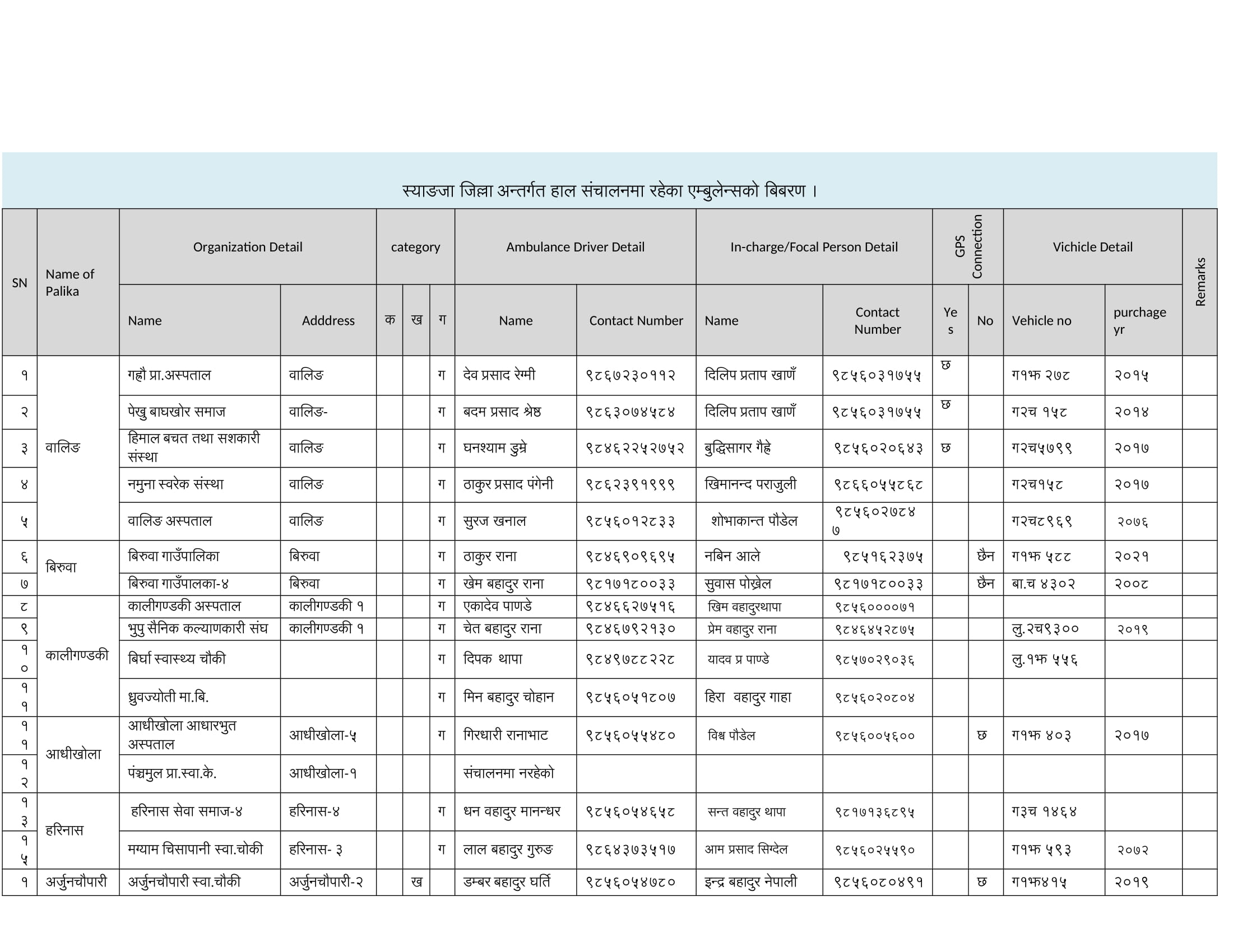 स्याङजा जिल्लामा सन्चालित एम्बुलेन्सको विवरण