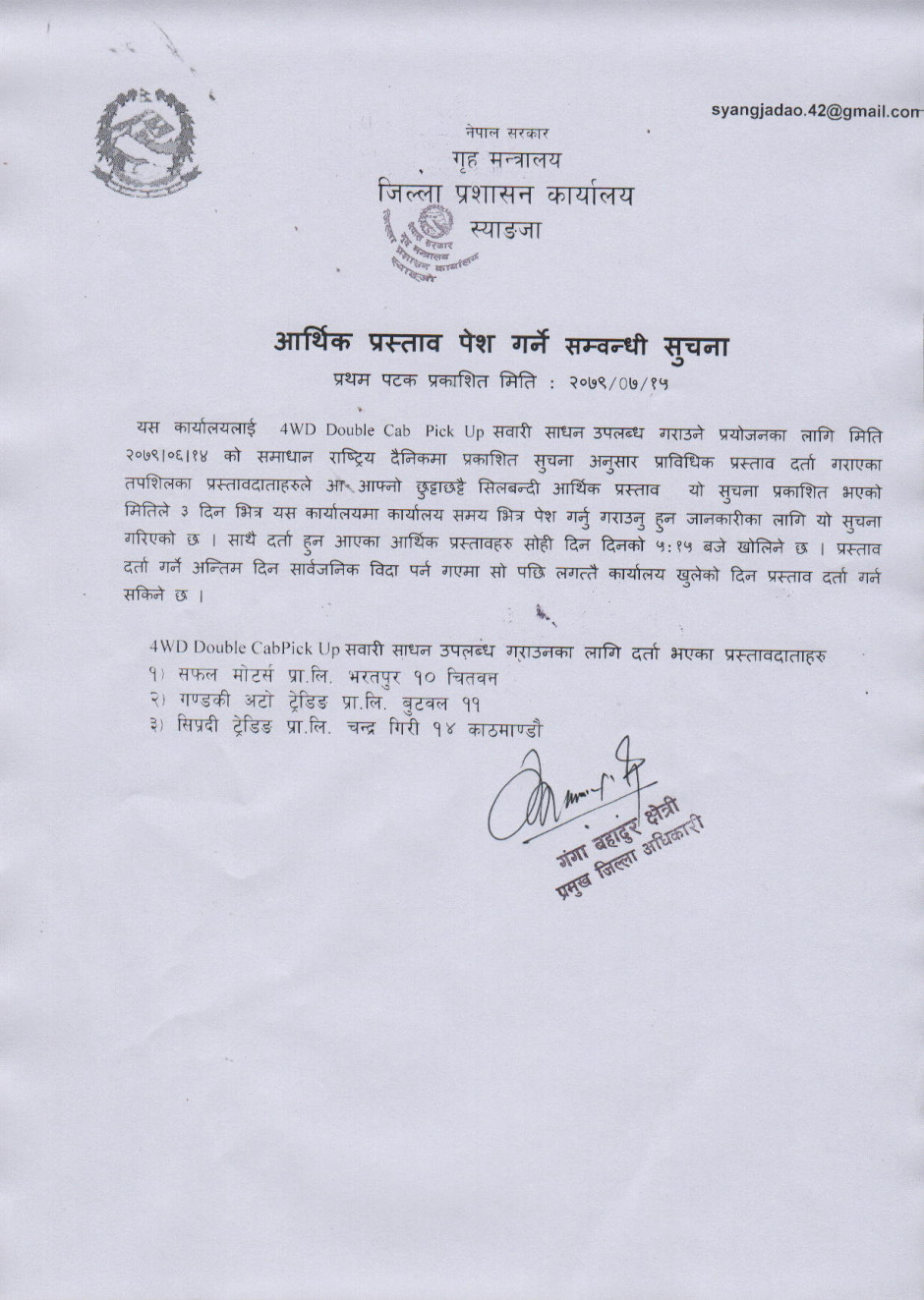 जिल्ला प्रशासन कार्यालय,स्याङ्जाको अत्यन्त जरुरी सूचना