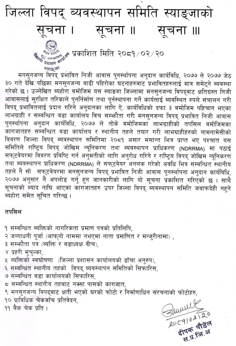 तस्बिर : जिल्ला विपद व्यवस्थापन समिति स्याङ्जाको सूचना