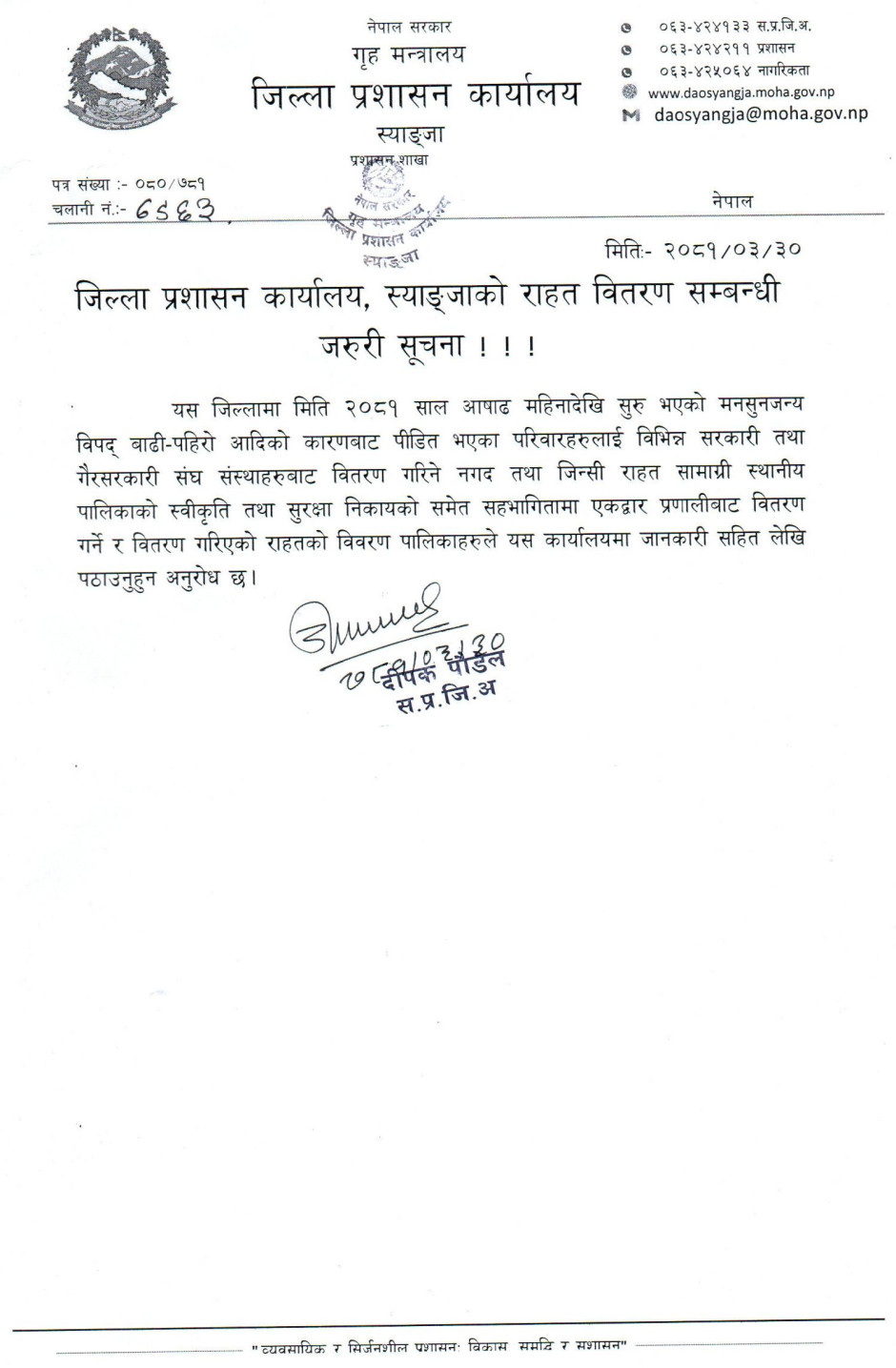 जिल्ला प्रशासन कार्यालय,स्याङ्जाको अत्यन्त जरुरी सूचना