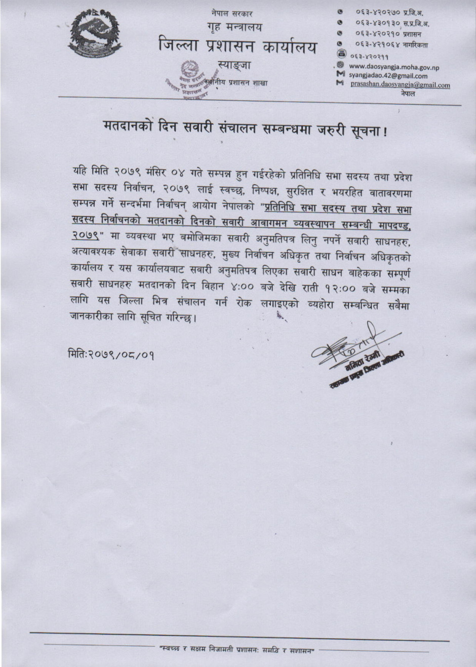 जिल्ला प्रशासन कार्यालय,स्याङ्जाको अत्यन्त जरुरी सूचना