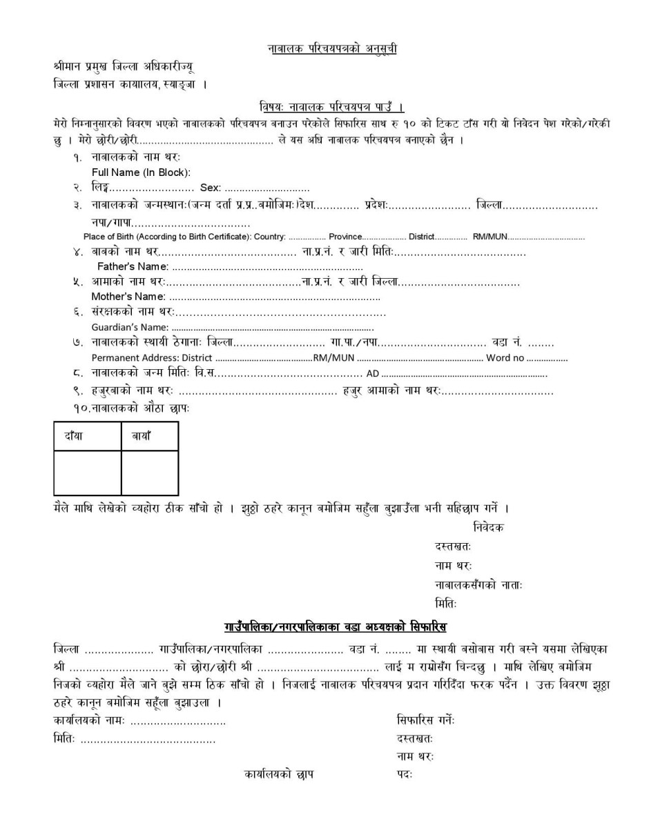 नाबालक परिचयपत्रको अनुसूची