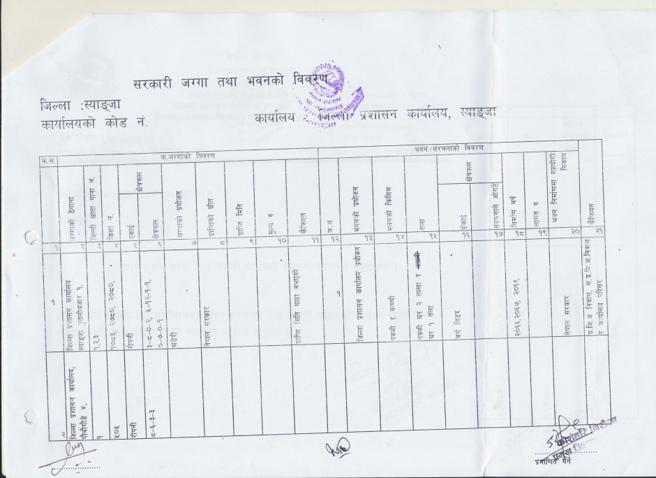 तस्बिर : कार्यालयको घरजग्गा लगायतको अचल सम्पत्तिकाे विवरण