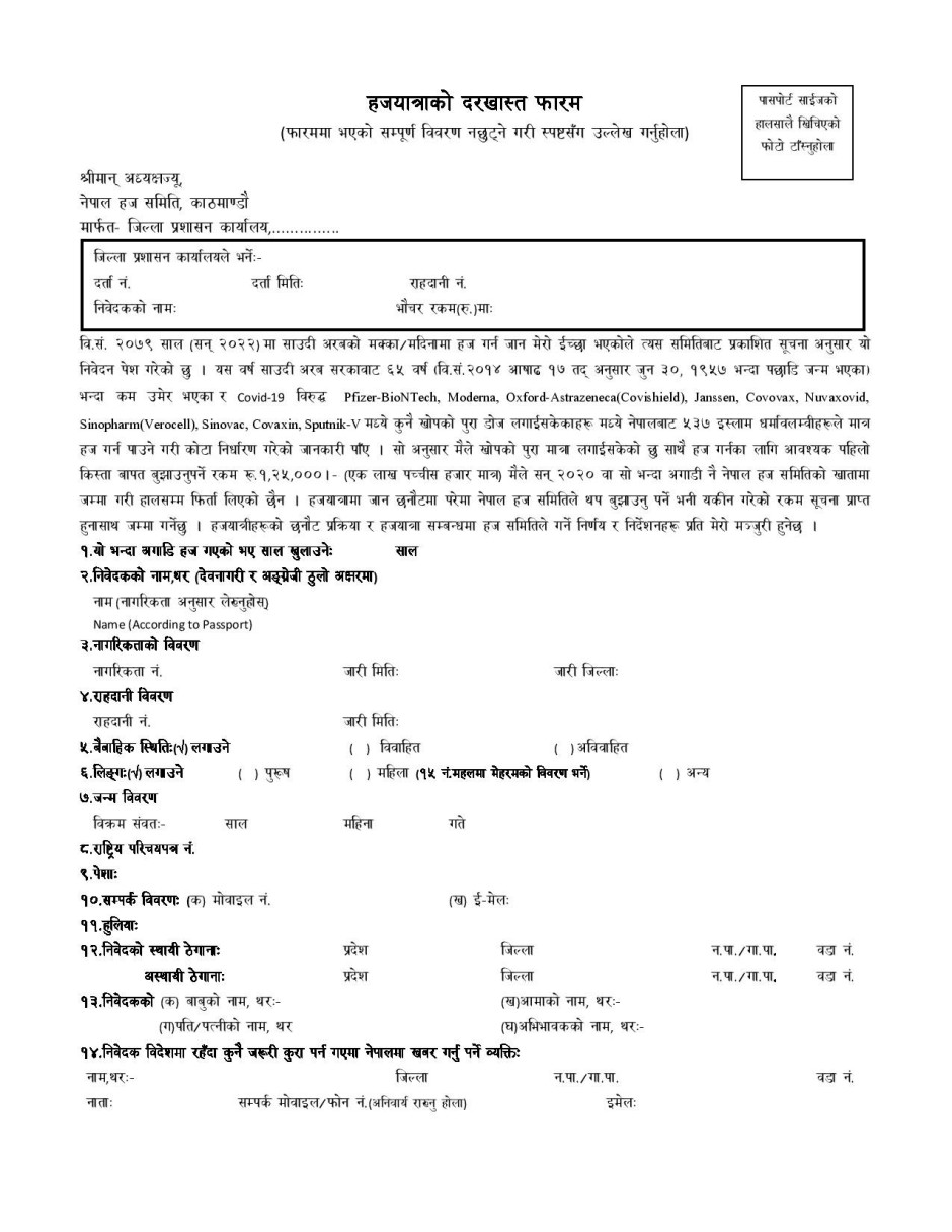 सन् २०२२ को हज यात्राको लागि नेपाल हज समिति, सिंहदरवार, काठमाडौंको सूचना