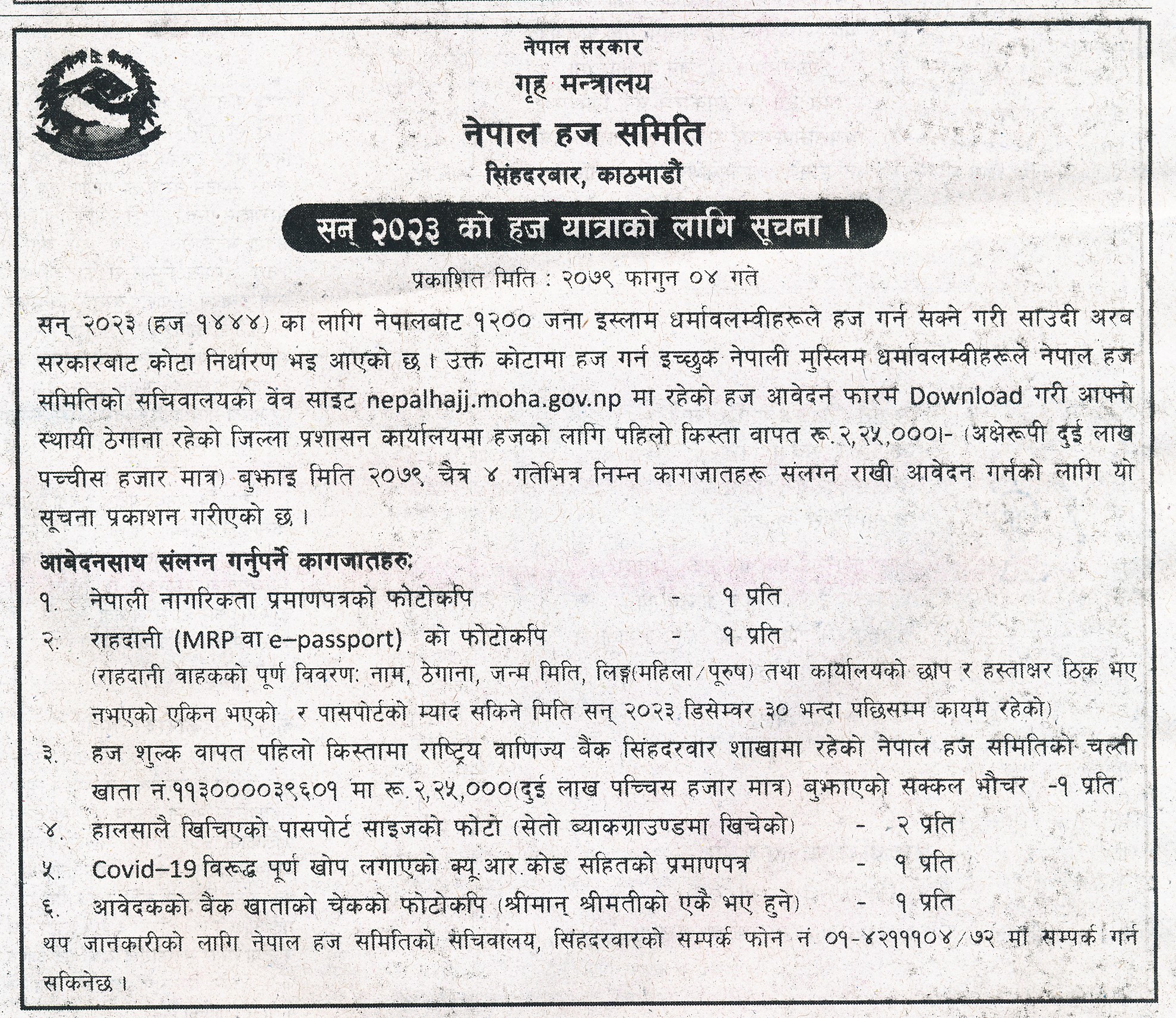 | सन् २०२३ को हज यात्राको लागि सूचना |